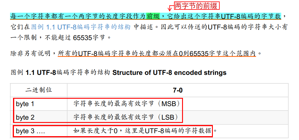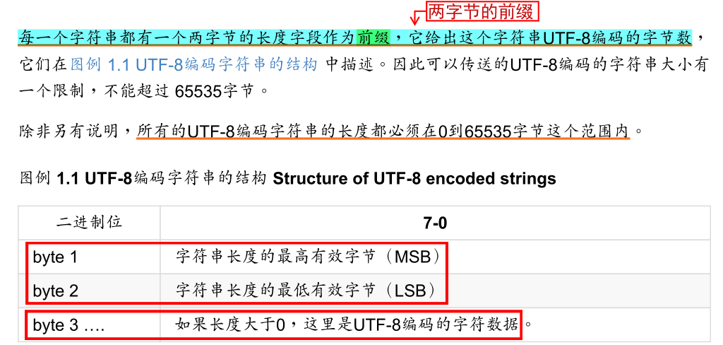 每一个UTF-8字符串编码,都包含2字节的长度数据,和0 ~ 65535的有效数据。