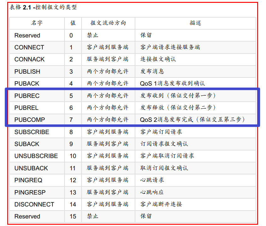 这是最高等级的服务质量,消息丢失和重复都是不可接受的。使用这个服务质量等级会有额外的开销。QoS = 2使用PUBREC、PUBREL、PUBCOMP,即发布收到、发布释放、发布完成来实现。