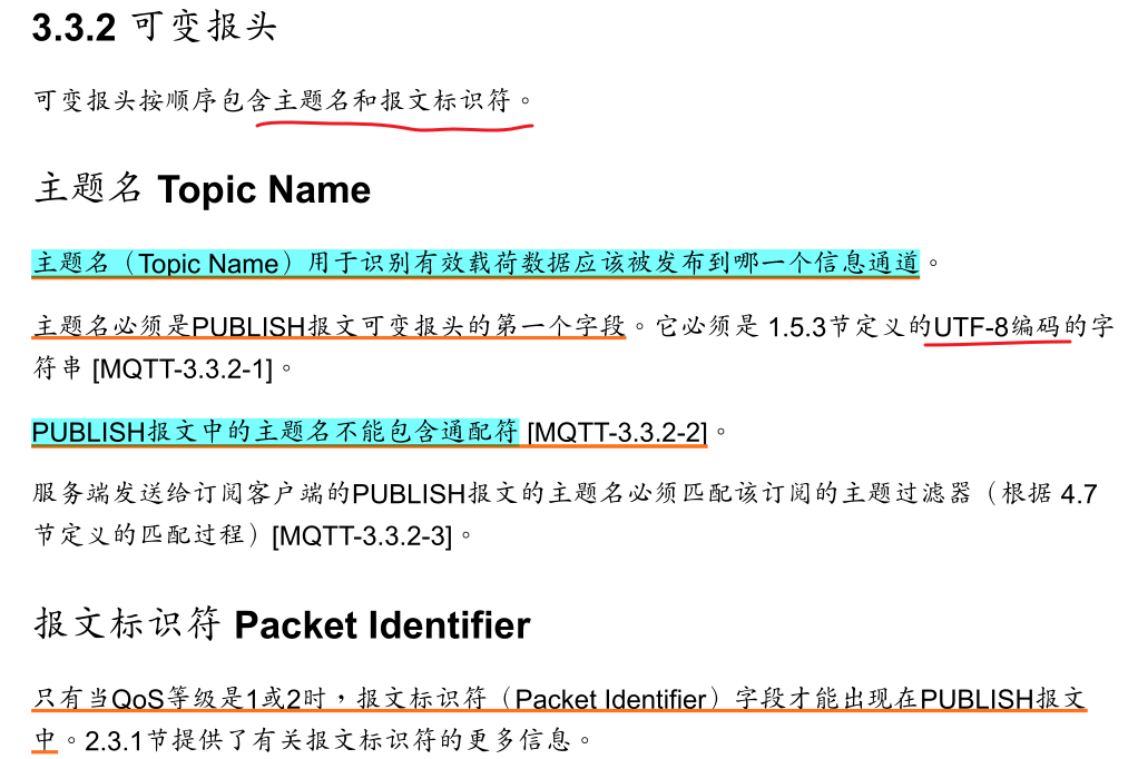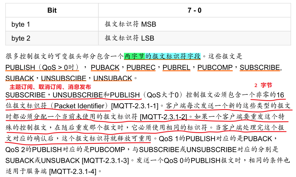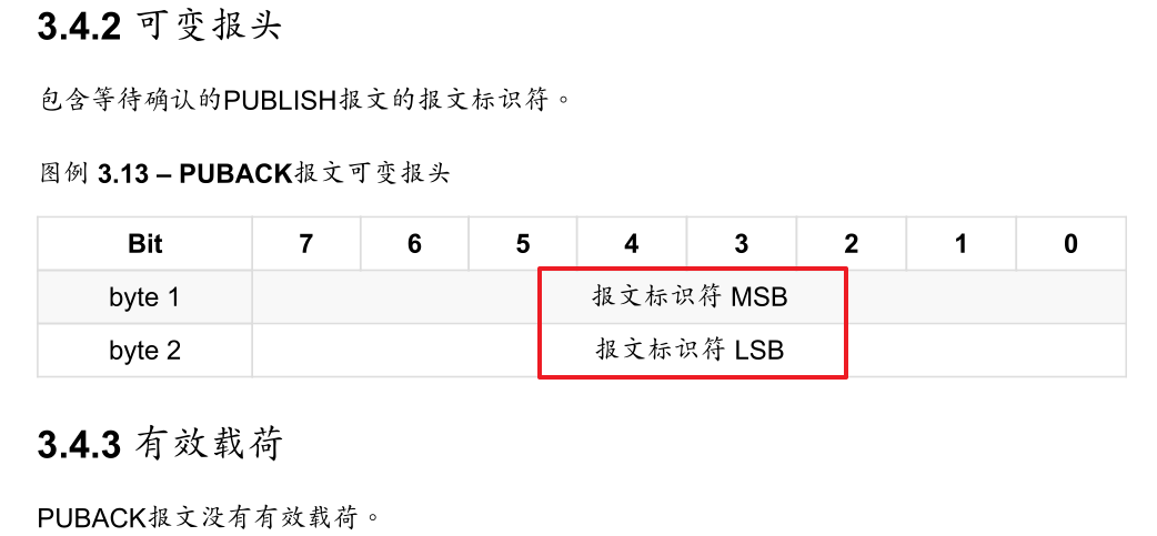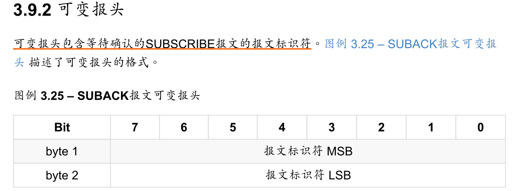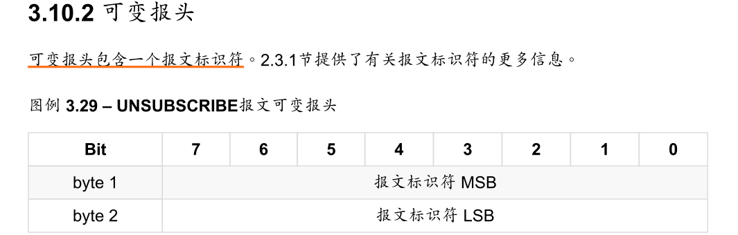 某些控制报文中,包含一个可变报头部分,它在固定报头和负载之间,可变报头的报文标识符(Packet Identifier)字段存在于多个类型的报文里。
