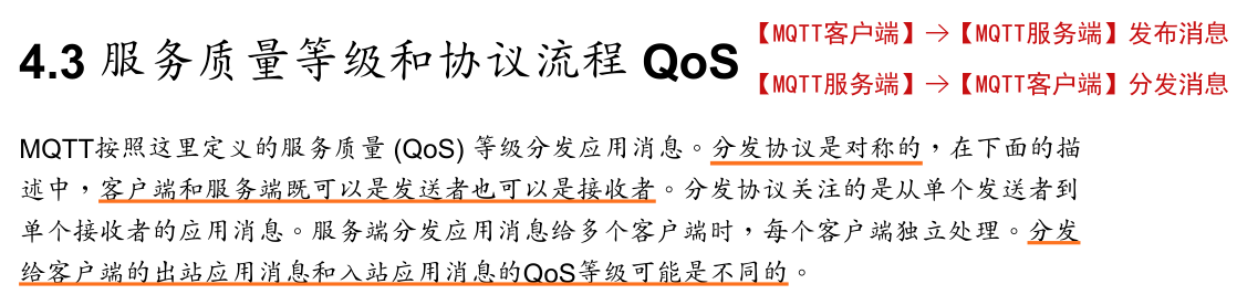 注意:QoS有 发布消息的Qos 和 订阅主题的Qos ,二者是独立的。发布消息的Qos是客户端向服务器发布消息时的服务质量等级,是否需要应答;订阅主题的Qos表示MQTT服务器向客户端分发时,是否需要应答。