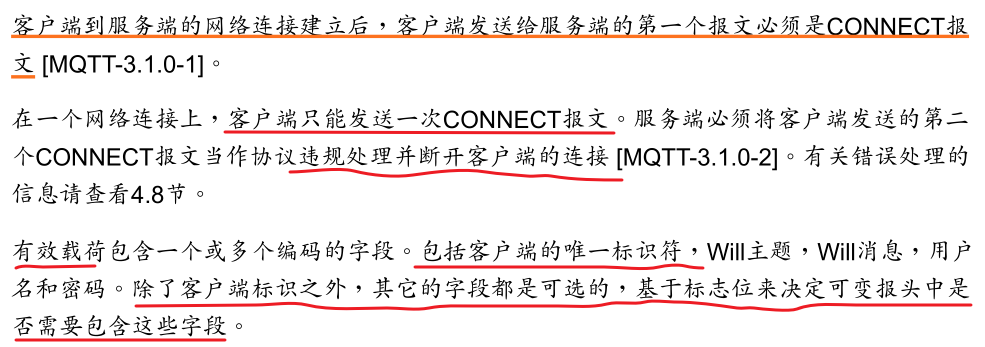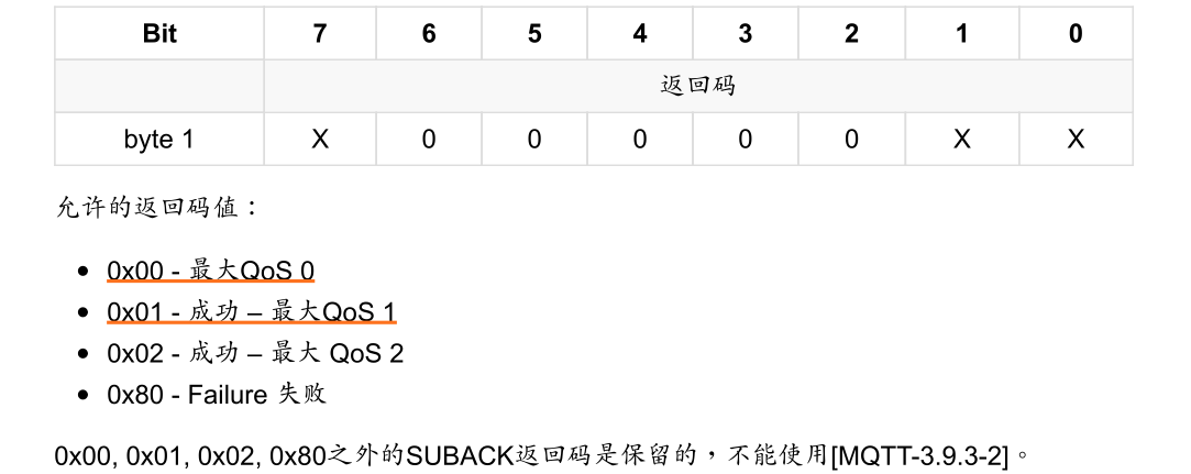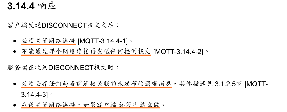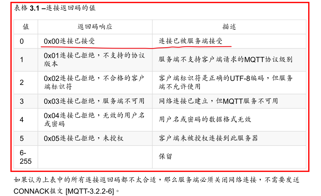 如果服务端收到一个合法的CONNECT报文,但出于某些原因无法处理它,服务端应该尝试发送一个包含非零返回码的CONNACK报文。如果服务端发送了一个包含非零返回码的CONNACK报文,那么它必须关闭网络连接。