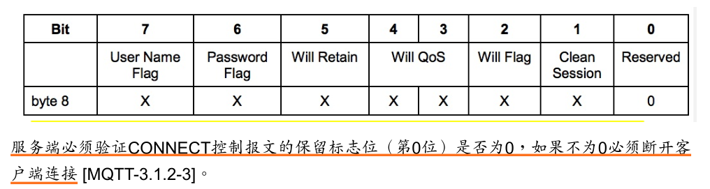 连接标志字节包含一些用于指定MQTT连接行为的参数。它还指出有效载荷中的字段是否存在。