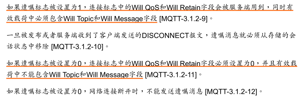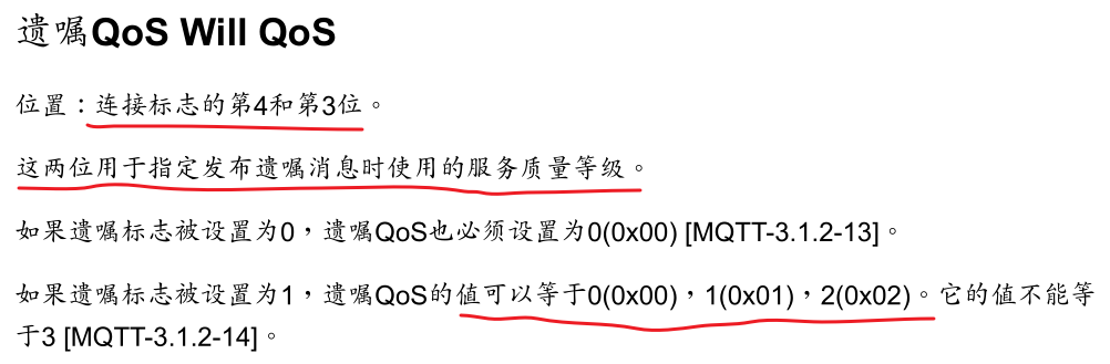 连接标志的位3 4:遗嘱消息服务质量等级;