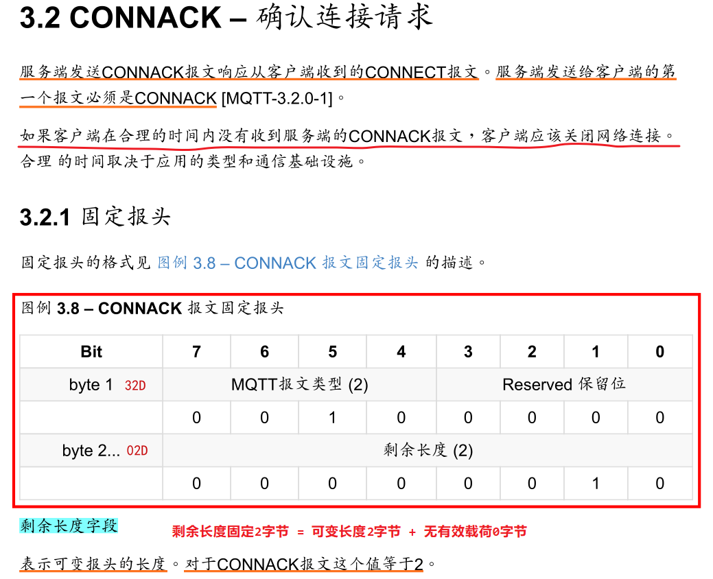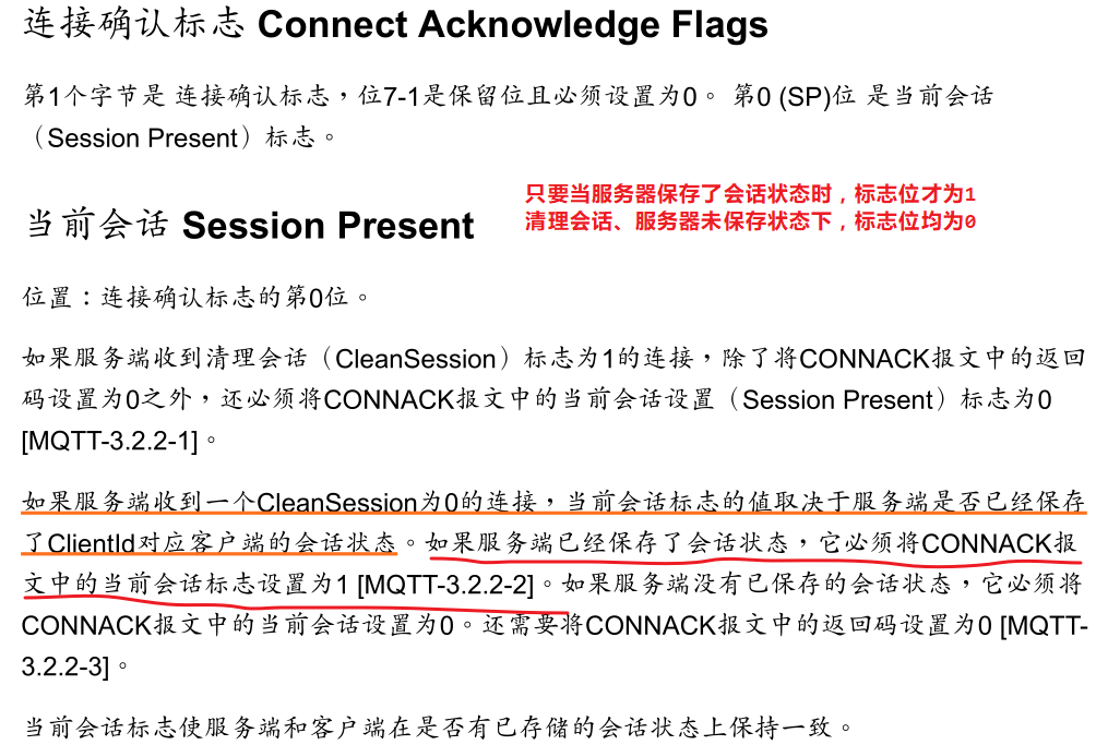 服务端发送CONNACK报文响应从客户端收到的CONNECT报文。服务端发送给客户端的第一个报文必须是CONNACK。