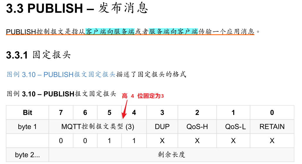可以看到,除发布消息的控制报文外,其他的标志位都是固定的;
