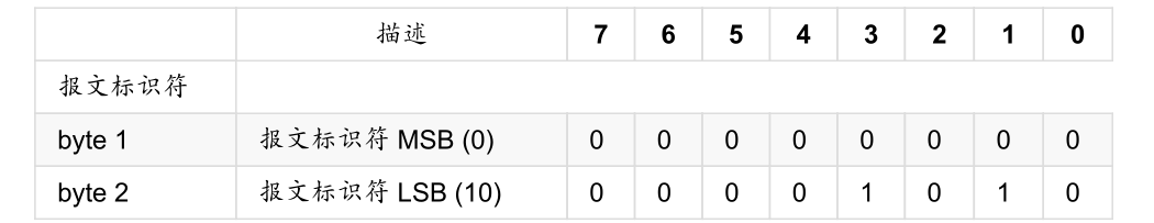 可变报头包括报文标识符。如报文标识符 = 10的示例: