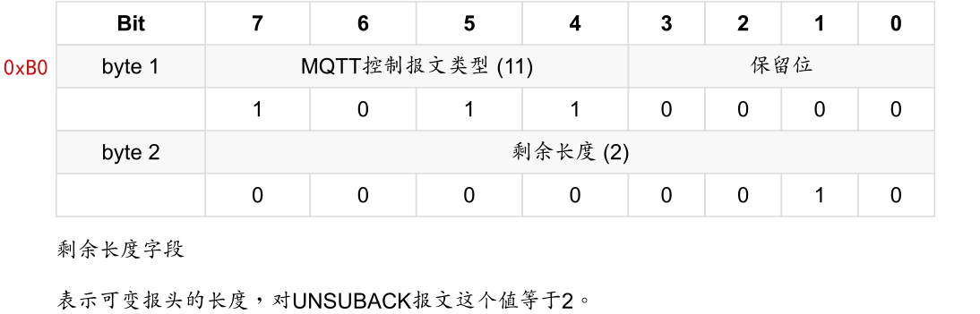 服务端发送UNSUBACK报文给客户端用于确认收到UNSUBSCRIBE报文。