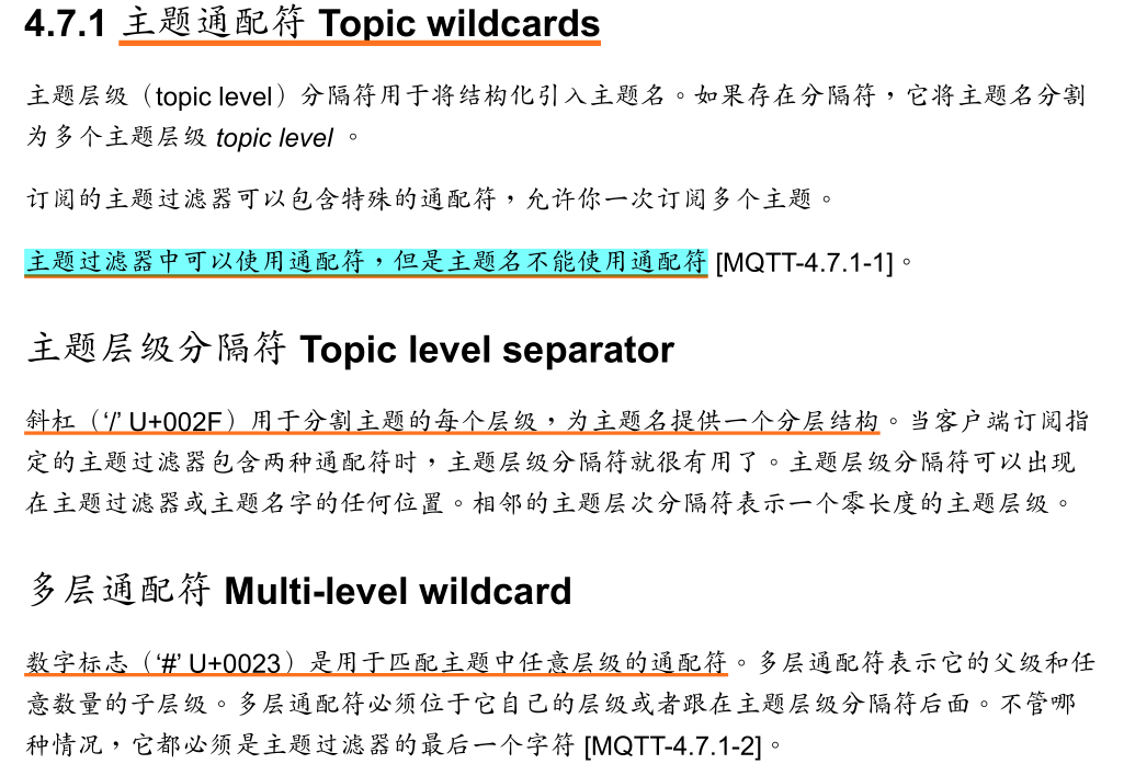 所谓的层级结构,类似于多层文件夹,通过通配符,可以获得某个文件夹下的所有内容(订阅这个主题下的所有主题)。