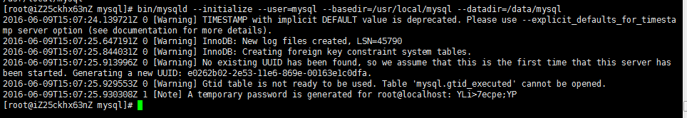 # bin/mysqld --initialize --user=mysql --basedir=/usr/local/mysql --datadir=/data/mysql