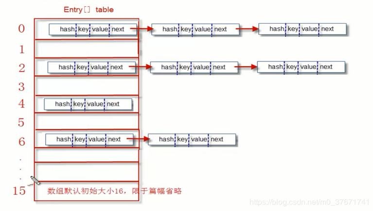 public Entry(int hash, Object key, Object value, Entry next) {