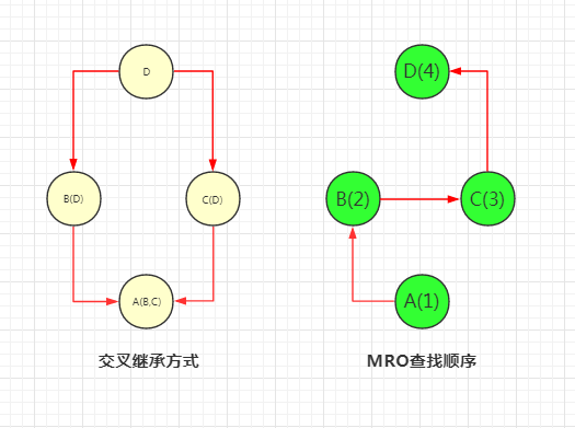 对于支持继承的编程语言来说,其方法(属性)可能定义在当前类,也可能来自于基类,所以在方法调用时就需要对当前类和基类进行搜索以确定方法所在的位置。 而搜索的顺序就是所谓的「方法解析顺序」(Method Resolution Order,或MRO)。 对于只支持单继承的语言来说,MRO 一般比较简单;而对于 Python 这种支持多继承的语言来说,MRO 就复杂很多。