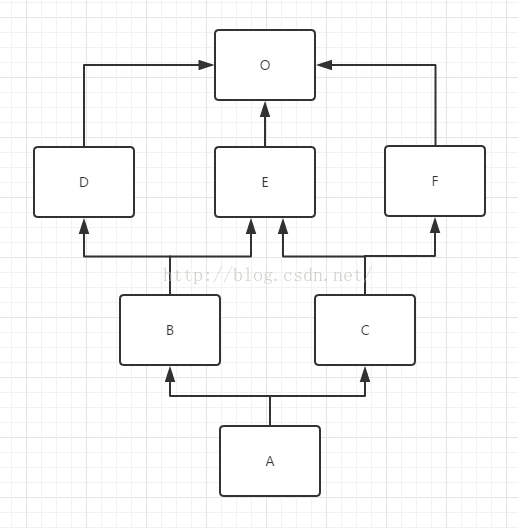 但是上面两个对于MRO的计算方法都有错误处,不过其中第二篇“C3算法了解”的评论给出了详细的解法。下面我也写出这两篇文章中的具体解法