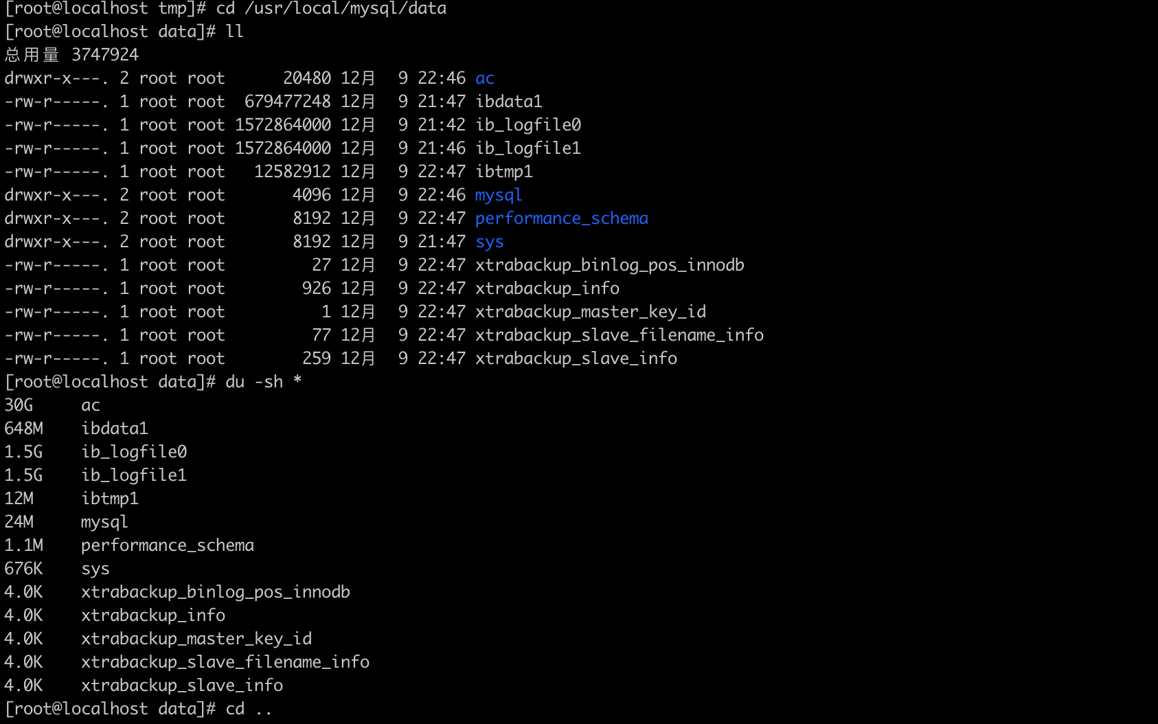 mv /usr/local/mysql/data /usr/local/mysql/data_bak