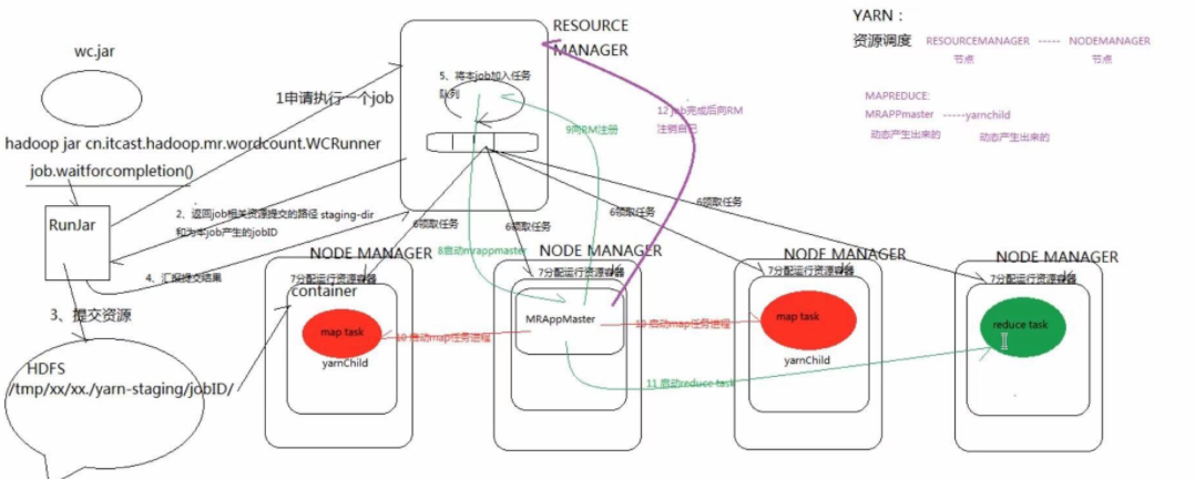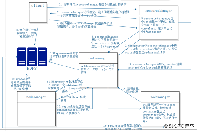 1.客户端向ResourceManagement 提交 运行的请求 (hadoop jar xxxx.jar)
