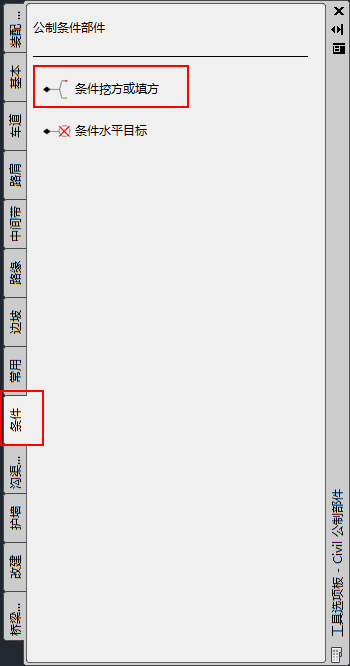 3 类型-----提供两种类型,挖方和填方,用于控制条件部件后续连接的部件是按照填方规则进行还是按照挖方规则进行。