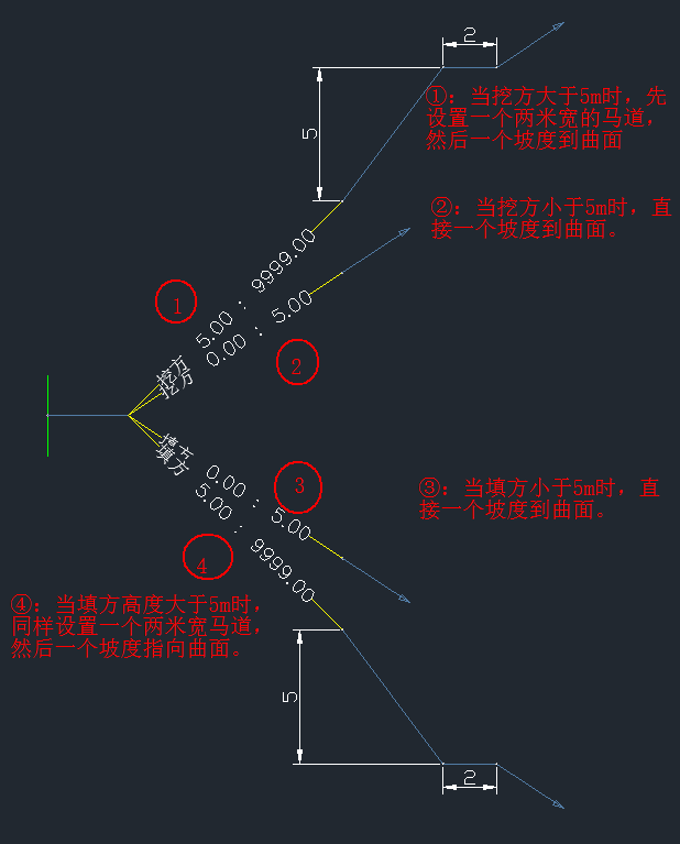 4 最小距离-----用于规定最小的挖方深度或是填方高度。