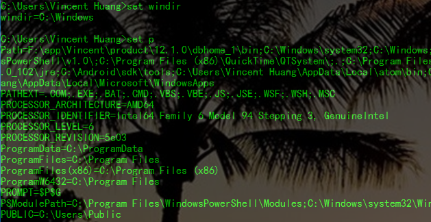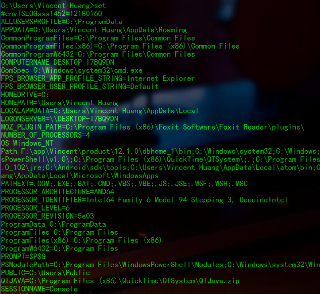在 Windows 命令行输入 set 命令可以查看 Windows 系统当前所存在的所有的环境变量。从环境变量中我们可以得到很多信息。