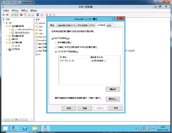 在主dns服务器上配置区域传送ip为被传送dns服务器ip