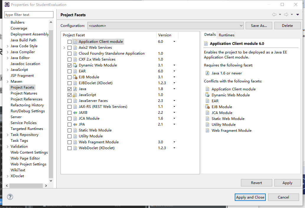 1、在eclipse的工程上选择属性,在选择Project Facets里面中选择Dynamic web Module,将版本改成2.5