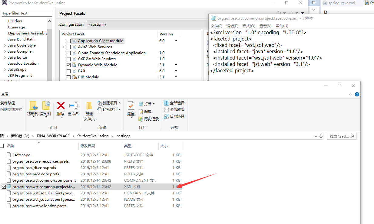 2.在工程目录下(项目所在的那个位置) 有一个.settings文件夹(linux系统这个文件夹是隐藏的)打开org.eclipse.wst.common.project.facet.core.xml