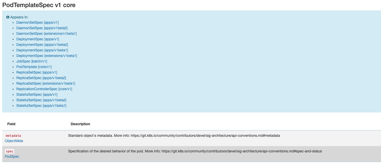 metadata和spec. 其中metadata和上面我们所设置的metadata一样,这里就不赘述了。spec通过下面的定义可以得知是podspec。