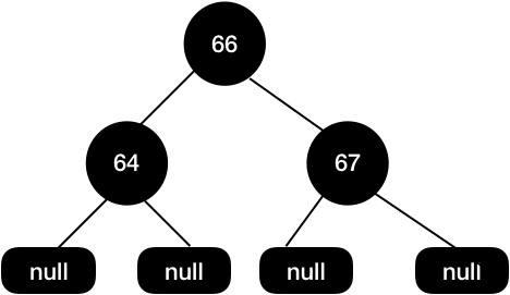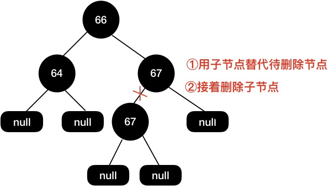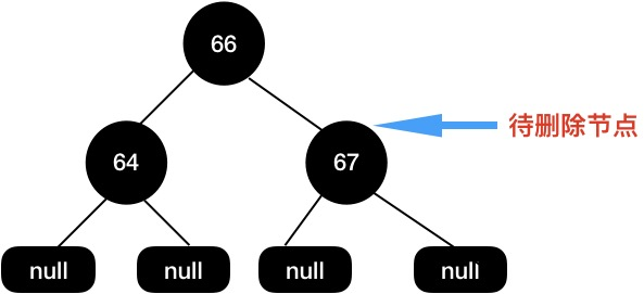 因为67 这个节点的两个子节点都是null,所以直接删除,得到如下图所示结构: