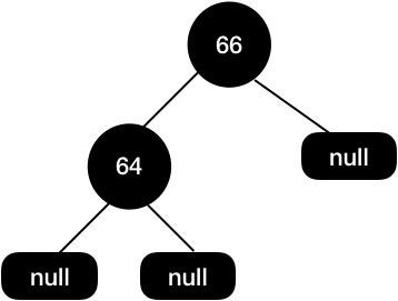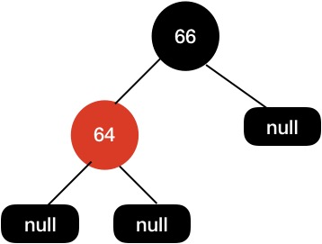 这个时候我们树的黑高是不一致的,左边黑高是3,右边是2,所以我们需要把64节点设置为红色来保持平衡。