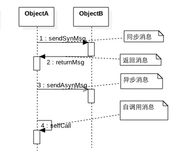 消息的发送者把控制传递给消息的接收者,然后停止活动,等待消息的接收者放弃或者返回控制。用来表示同步的意义。以一条实线+实心箭头表示。
