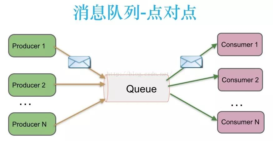 消息生产者生产消息发送到queue中,然后消息消费者从queue中取出并且消费消息。消息被消费以后,queue中不再有存储,所以消息消费者不可能消费到已经被消费的消息。Queue支持存在多个消费者,但是对一个消息而言,只会有一个消费者可以消费。