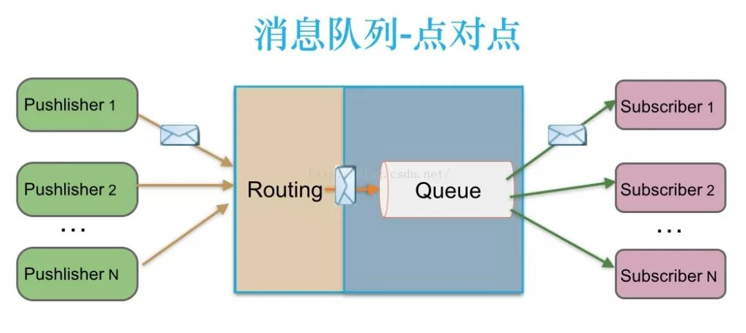 生产者发送一条消息到queue,一个queue可以有很多消费者,但是一个消息只能被一个消费者接受,当没有消费者可用时,这个消息会被保存直到有 一个可用的消费者,所以Queue实现了一个可靠的负载均衡。