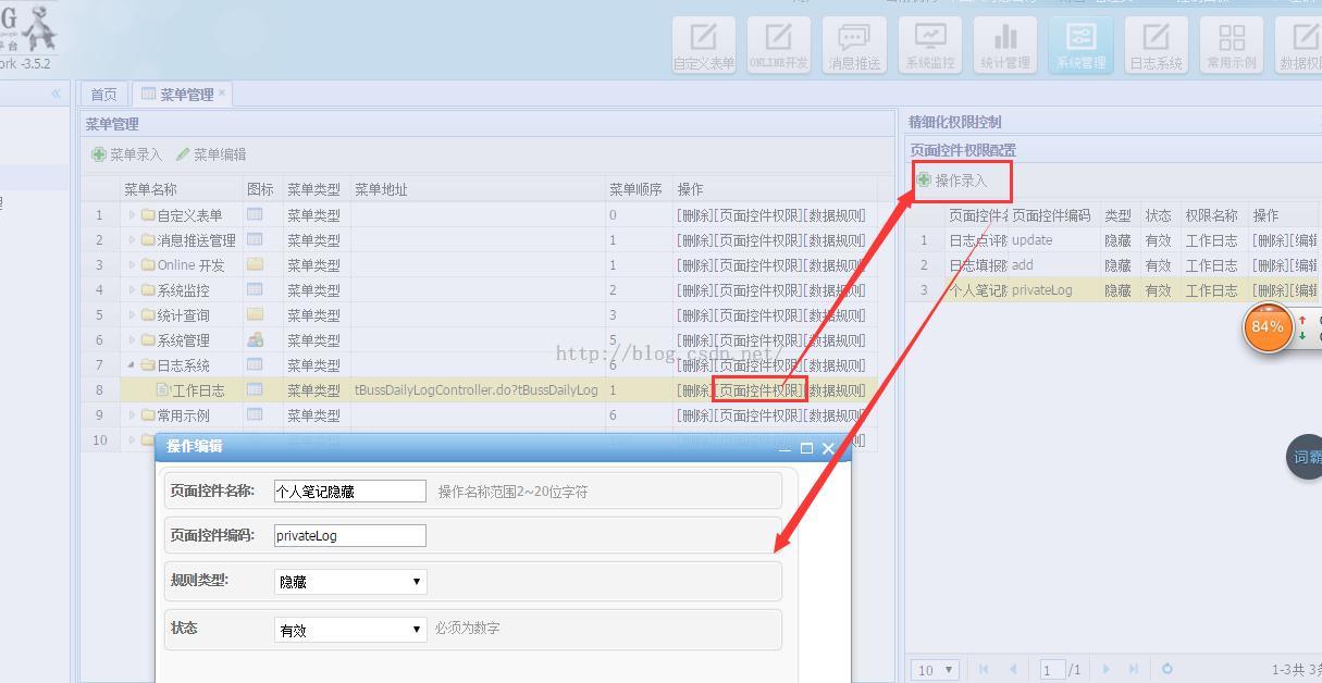 B、在菜单管理中,为工作日志菜单加控件权限:日志点评隐藏