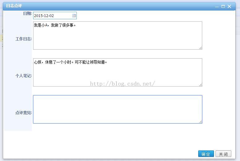 6、 日志点评页面,经理只可以编辑日志点评字段。
