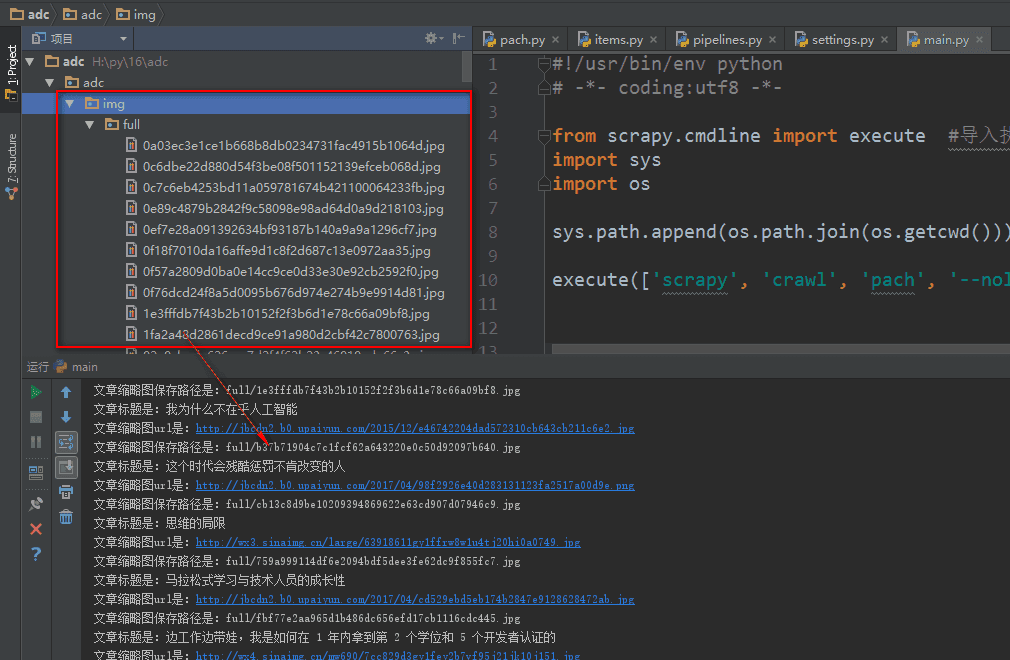 IMAGES_URLS_FIELD = 'img' #设置要下载图片的url字段,就是图片在items.py里的字段里