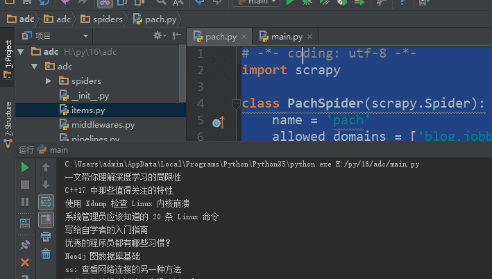 asd = response.css('.archive-title::text').extract() #这里也可以用extract_first('')获取返回字符串