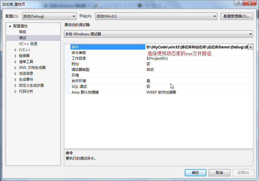 在动态库工程中设置如下 然后直接运行动态库就可以了 如果发现运行动态库出现无效的断点了 那么就是因为动态库的代码有了新的改动,导致exe使用的动态库和代码不一致引起的 解决方法: 重新生成动态库,重新编译使用动态库的exe工程,这样应用程序使用的动态库就和动态库的代码一致了嘛,就不会有无效的断点了 来源:CSDN作者:飞天_链接:https://blog.csdn.net/qq_36769722/article/details/103570106 标签 动态库