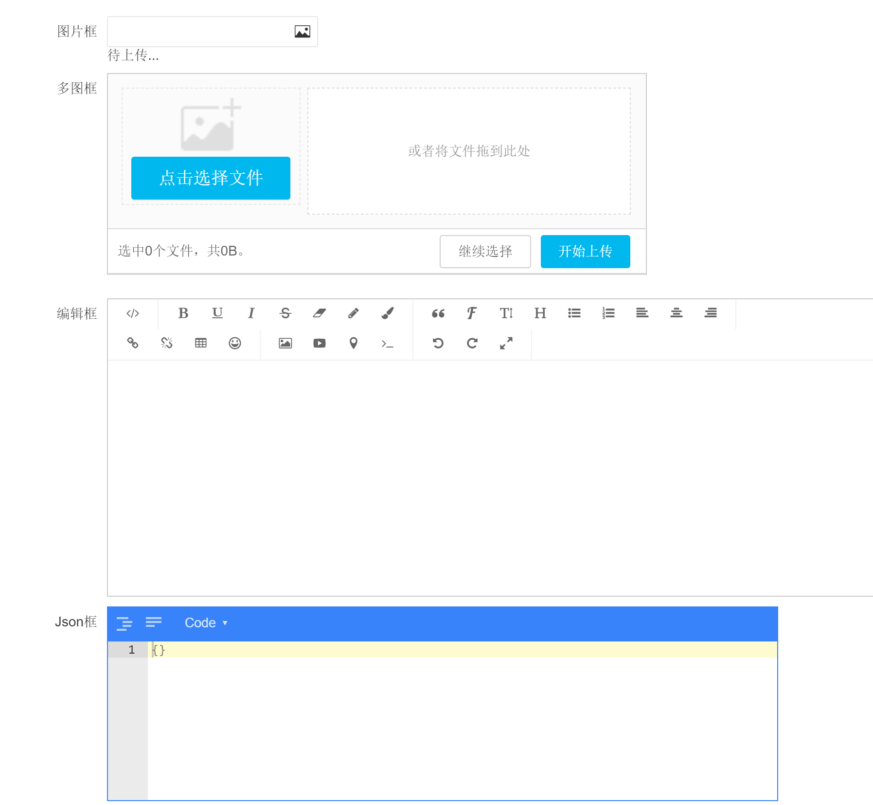<!--多图 附件 编辑 json框 均需要设置'isEditor' : true 不使用这些时可设为false-->