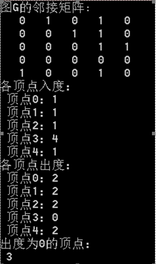 4. 求出图G中每个顶点的出度以及出度为零的顶点OutDs1(MatGraph g);