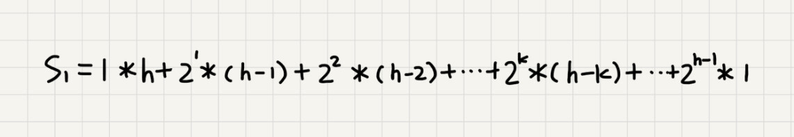 我们将每个非叶子节点的高度求和,就是下面这个公式:
