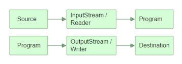 我们可以在程序中通过InputStream和Reader从数据源中读取数据,然后也可以在程序中将数据通过OutputStream和Writer输出到目标媒介中