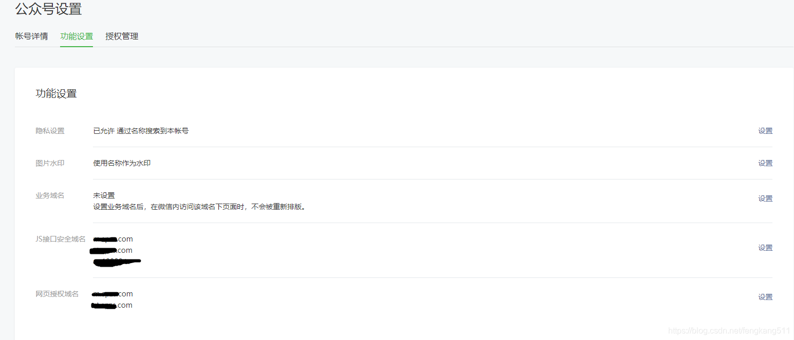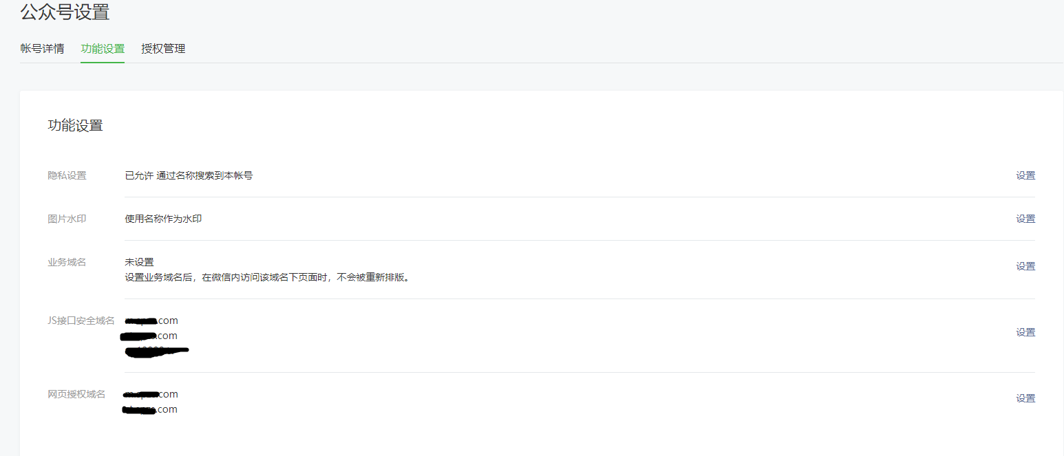 jsapi支付需要获取用户的openid,需要在微信统一下单接口中使用,设置路径:公众号设置-->功能设置-->网页授权域名。用哪个域名获取的openid就用设置哪个域名。