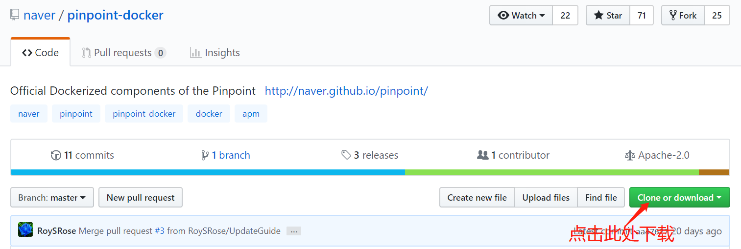 下载地址 https://github.com/naver/pinpoint-docker ,使用工具shadowsockets下载,如果没有服务器,可以访问搬瓦工进行服务器购买。要不然速度会比较慢。