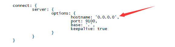 2)修改文件,增加内容hostname: '0.0.0.0',如图