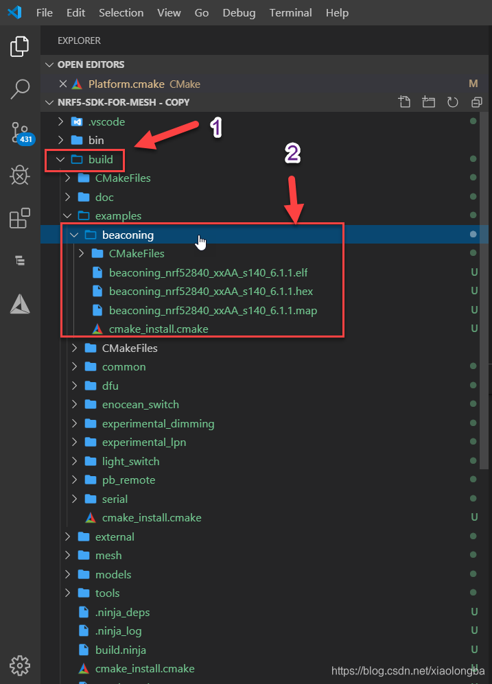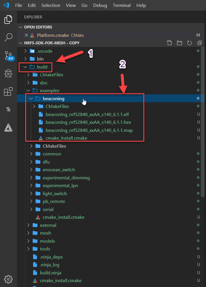 安装完上述的软件之后,我们就可以直接用Visual Studio Code打开nRF5-SDK-for-Mesh了,如下所示: