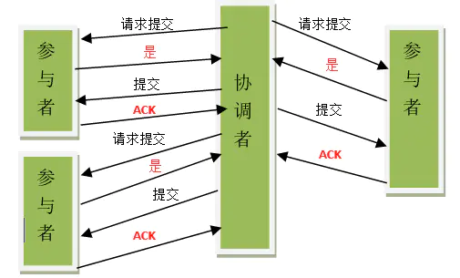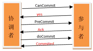 缺点:数据不一致问题依然存在,当在参与者收到 preCommit 请求后等待 do commite 指令时,此时如果协调者请求中断事务,而协调者无法与参与者正常通信,会导致参与者继续提交事务,造成数据不一致。