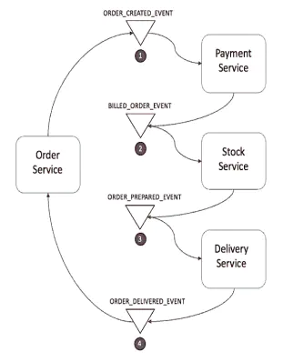 货运服务监听ORDER_PREPARED_EVENT,然后交付产品。最后,它发布ORDER_DELIVERED_EVENT。