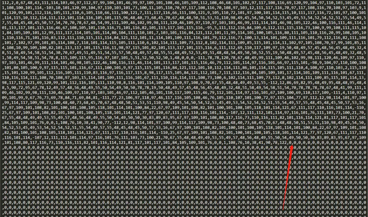 可以看到,这个数组实际大小只有1k左右(数前面的非0的数字的个数), 后面都是一些无意义的0值.
