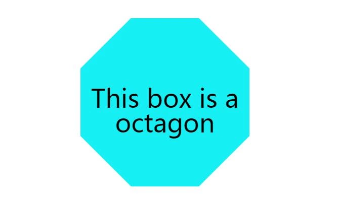 所以对于一个八边形,我们可以设置八组x,y点坐标来定义。在这种情况下,对于第一个x,我们从盒子宽度的30%开始,对于y,我们从盒子的顶部开始,然后顺时针设置各个点。可见区域就是通过将这些点用直线连接而形成的形状。