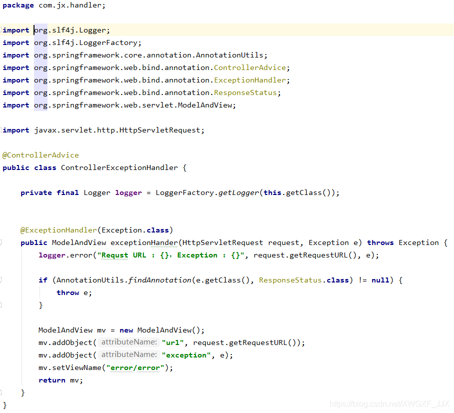 public ModelAndView exceptionHander(HttpServletRequest request, Exception e) throws Exception {