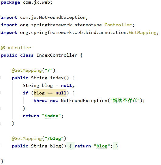 首页的Controller,定义一个GetMapping测试异常,这里没有导入页面不进行测试了,之后导入页面后再进行测试