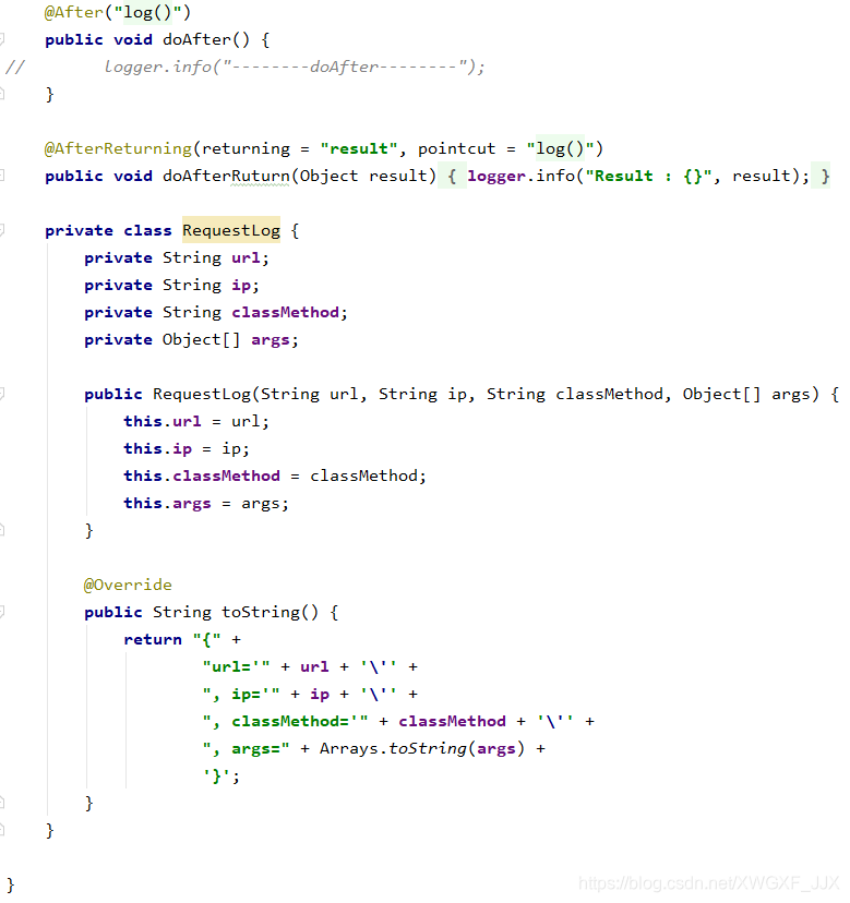 RequestLog requestLog = new RequestLog(url, ip, classMethod, args);